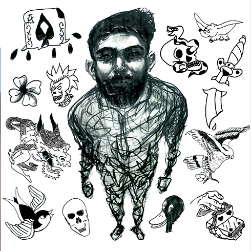 “Le tatouage, on le fait ici à la maison centrale de Poissy mais c’est dangereux et les dessins sont très basiques. Que du noir et gris, pas de dégradés ni de couleurs. Des fois, on doit aller vite et ça pousse aux erreurs.
